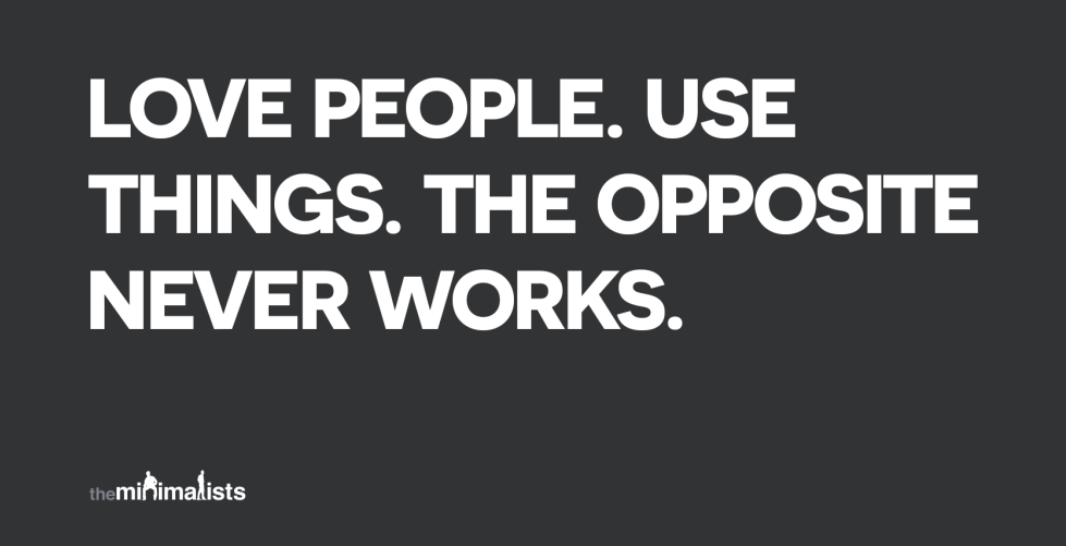 Une citation de Joshua Fields Millburn et Ryan Nicodemus (the Minimalists) : « Aime les gens et utilise les objets ; le contraire ne fonctionne jamais. »